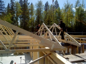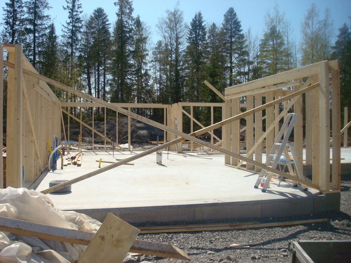 Se hur ett hus bli till, helt byggt från lösvirke, från start till mål.